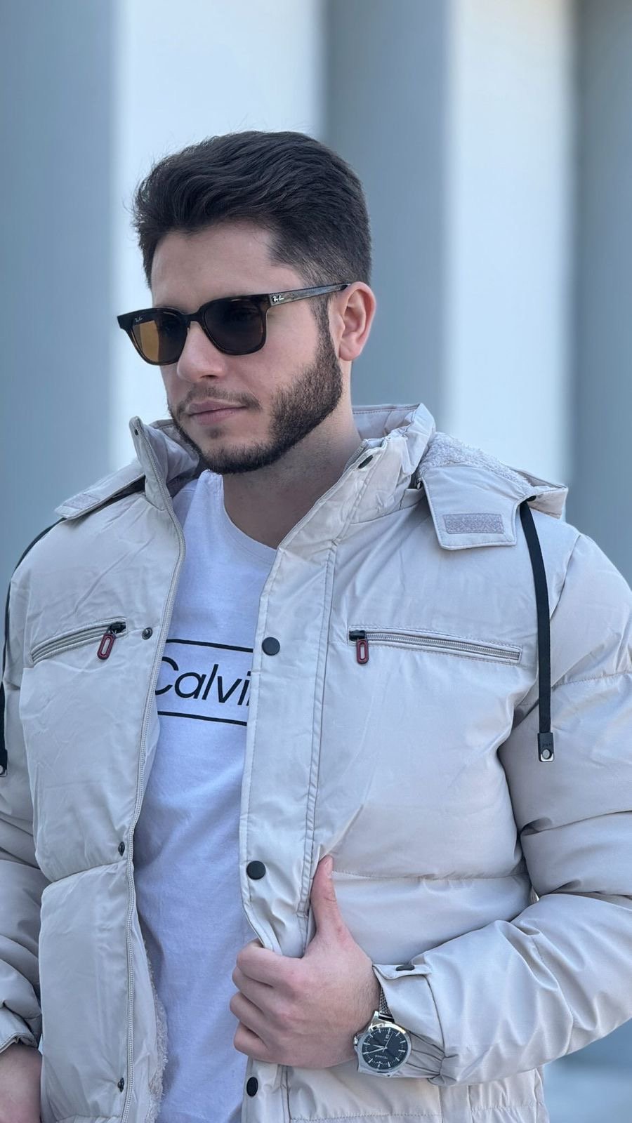 Jaqueta bege moderna e versátil, feita em tecido leve e resistente. Possui corte ajustado, bolsos funcionais e acabamento sofisticado — ideal para compor looks casuais ou elegantes em qualquer estação.